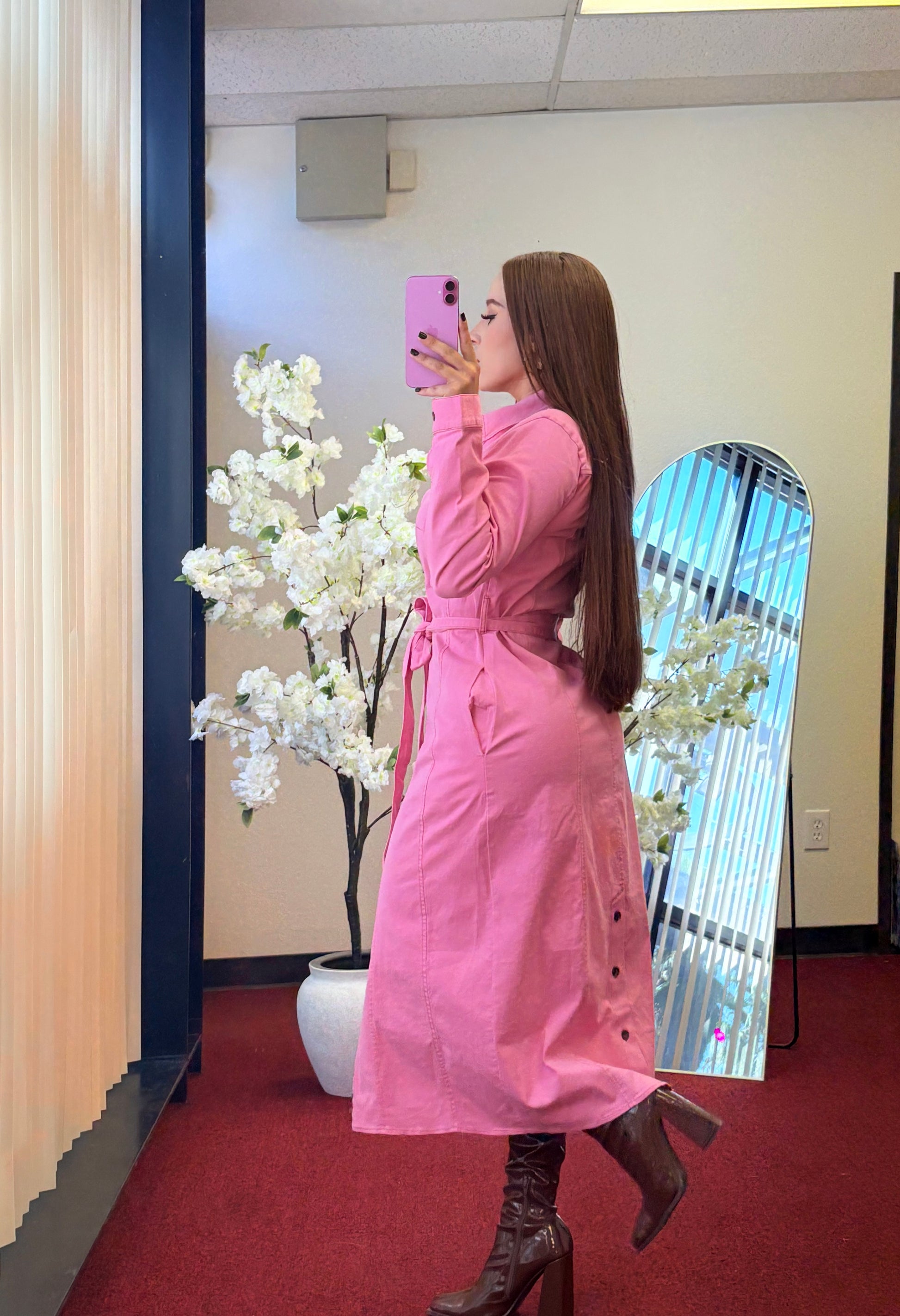 Washed twill roll up sleeve middi buttondwon shirt jacket dress. (Tejano belt not included)